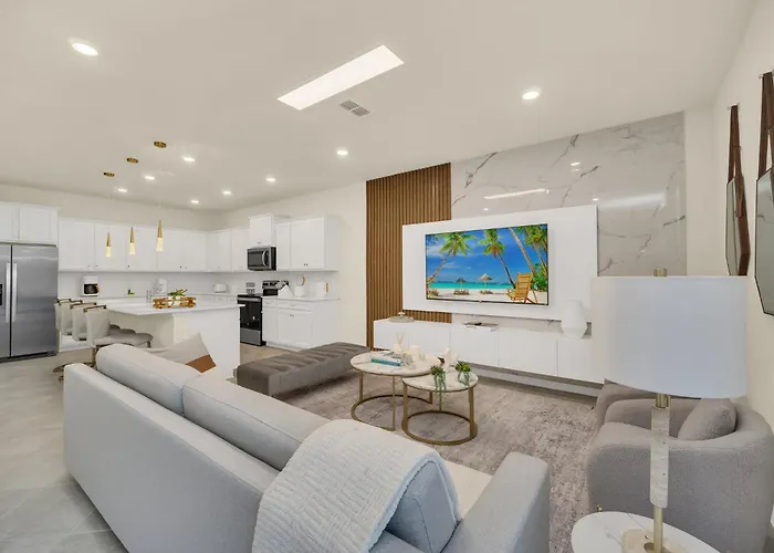 Es gibt eine Mikrowelle, eine Kaffee-/Teemaschine und Küchenutensilien in einer kompletten Küche. Die Villa Chic 10BR Retreat with Themed Rooms & Pool bietet Zugang zu einem privaten Swimmingpool sowie die Möglichkeit, an Fitness-Stunden teilzunehmen.